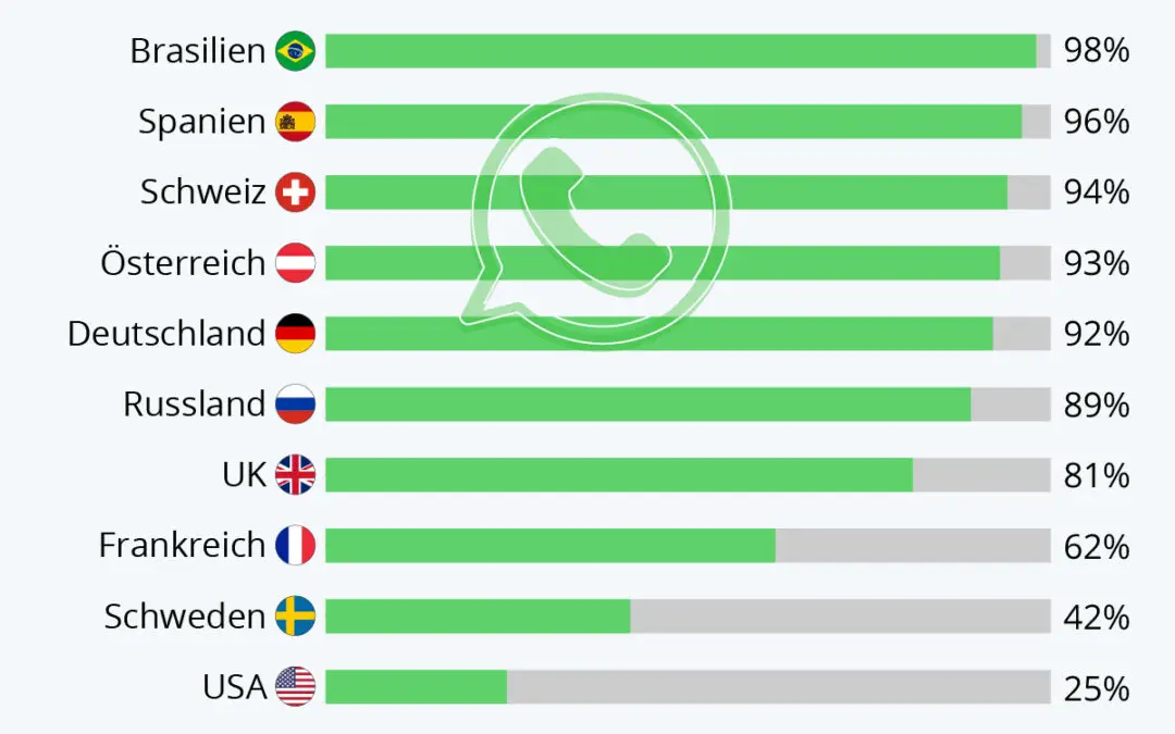 93 Prozent der für den Statista Global Consumer Survey in Österreich befragten Menschen geben an, WhatsApp regelmäßig zu nutzen. Nach dem 15. Mai könnten es vielleicht ein paar weniger werden. Dann nämlich müssen die Nutzer_innen den neuen Nutzungsbedingungen...
