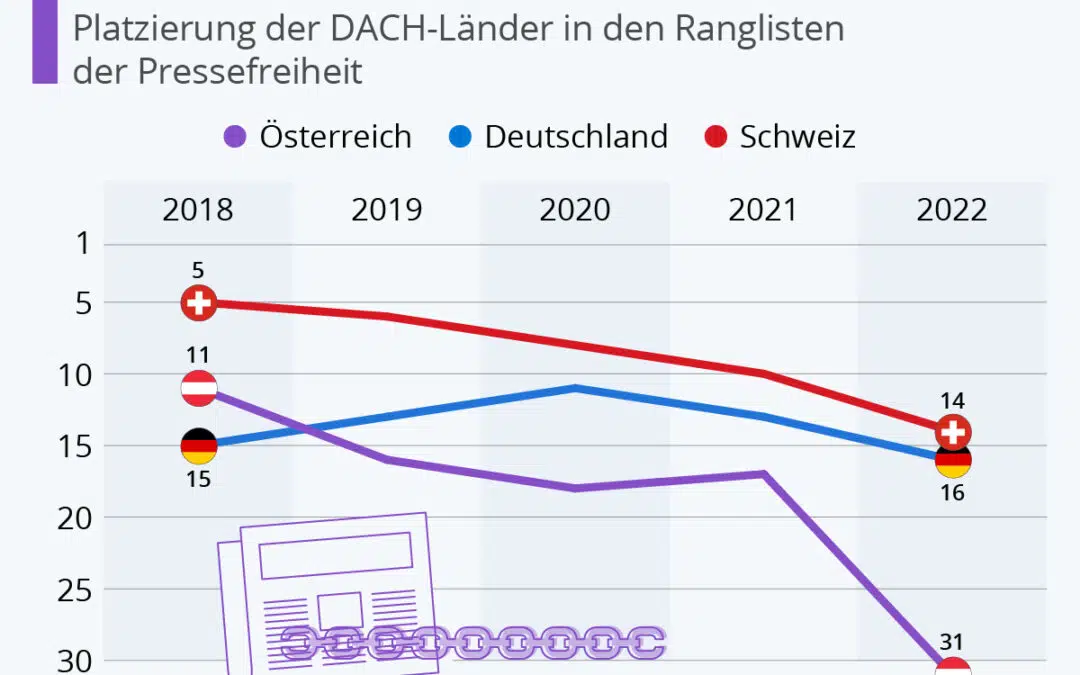 Wie gestern in den Medien ausführlich berichtet wurde, stürzt Österreich im Ranking der Reporter ohne Grenzen (RSF) im Ranking der Pressefreiheit vom Platz 11 (2018) auf den 31. Platz ab. Die Schweiz befindet sich auf Platz 14, Deutschland auf Platz 16. Grund für...